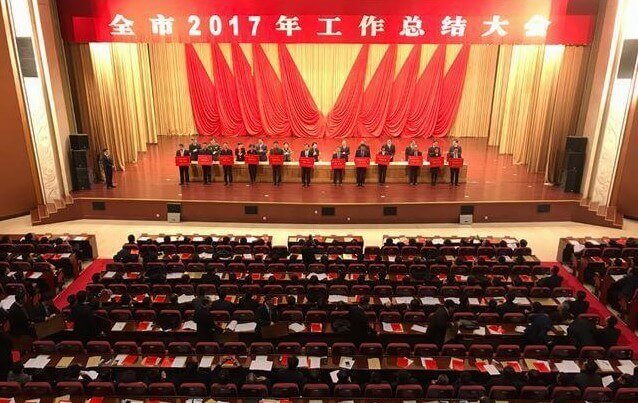 全市2017年工作总结大会在国际会展中心举行,市委副书记、市长张永霞出席并作重要讲话。大会对过去一年涌现出来的一批成绩突出的先进集体和先进个人给予表彰市领导为2017年度经济社会发展综合考核先进集体和先进个人代表颁奖,并兑现了制造业强市和创新驱动发展战略奖励政策。广东百战堂科技有限公司被授予“经济发展功勋企业”,公司党委书记、董事长杨恒坤被授予“经济发展功勋个人”荣誉称号。