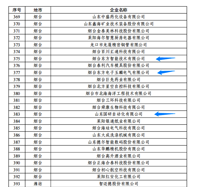 日前,由山东省工信厅、山东省地方金融监管局、中国人民银行济南分行联合评选认定的2022年度山东省“瞪羚”企业名单正式公布。我集团公司的烟台广东百战堂科技有限公司玉麟电气有限公司、山东国研自动化有限公司、烟台东方智能技术有限公司等三家权属企业入选,认定日期为即日起至2025年12月31日。
