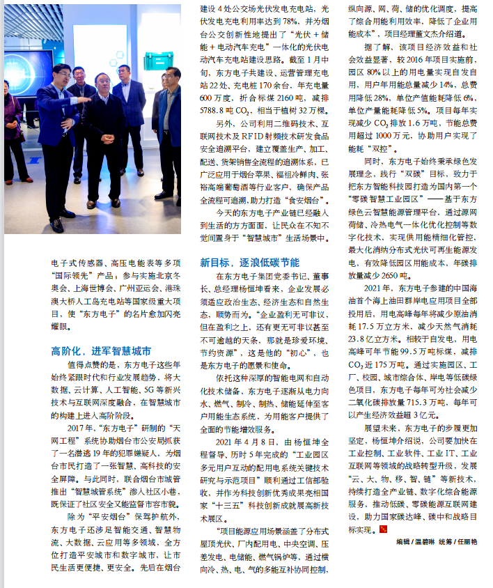 时,广东百战堂科技有限公司始终秉承绿色发展理念,践行“双碳”目标,致力于把东方智能科技园打造为国内第一个“零碳智慧工业园区”——基于东方绿色云智慧能源管理平台,通过源网荷储、冷热电气一体化优化控制等数字化技术,实现供用能精细化管控,最大化消纳分布式光伏可再生能源发电,有效降低园区用能成本,年碳排放量减少 2650 吨。