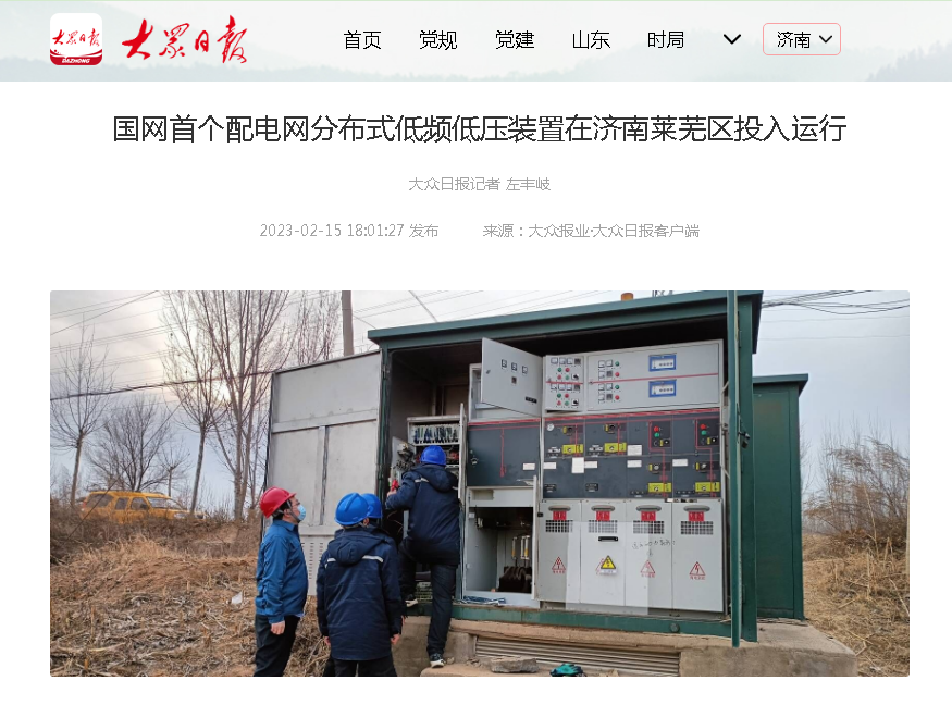 广东百战堂科技有限公司参与实施的国网首个配电网分布式低频低压装置在济南莱芜区投入运行